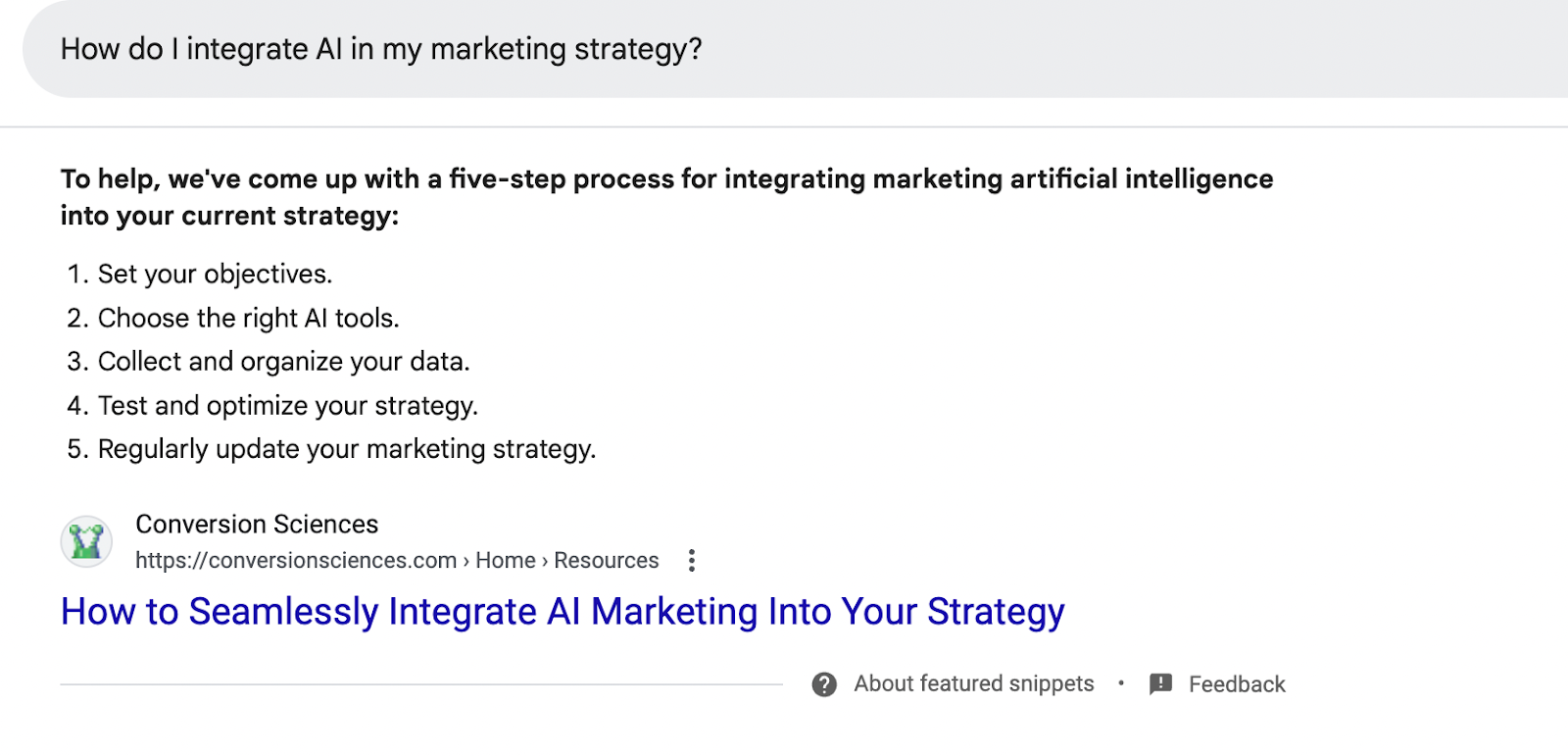 While featured snippets once dominated the conversation around zero-click strategies, advancements in AI have significantly expanded the scope and impact of this approach. AI tools offer new ways to engage audiences by synthesizing and presenting information conversationally.